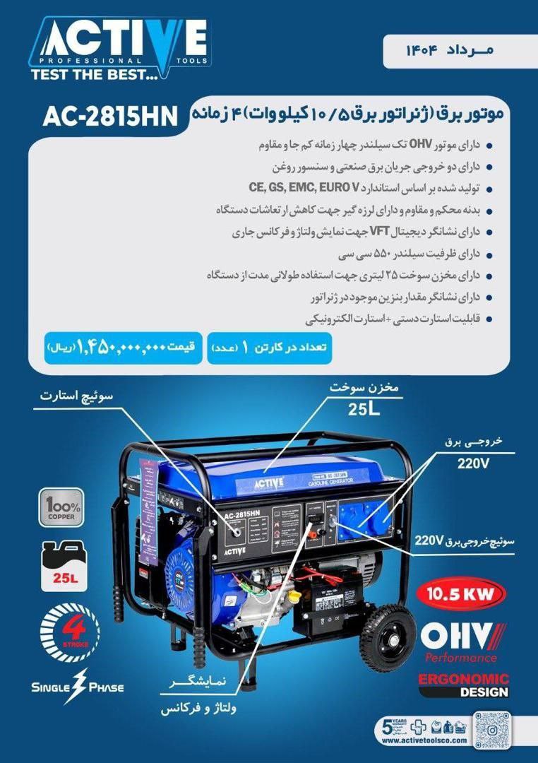 موتور برق ۱۰/۵ کیلو وات واقعی اکتیو مدل ۲۸۱۵